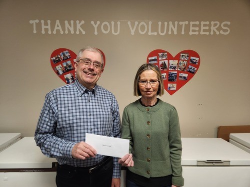 We want to thank everyone for your donations to our local Food Bank during our Community Breakfast on February 14, 2026. We were blessed to receive a total of $575 in monetary donations. Pictured is Keith Collins presenting the donation to Irene Pitcher.